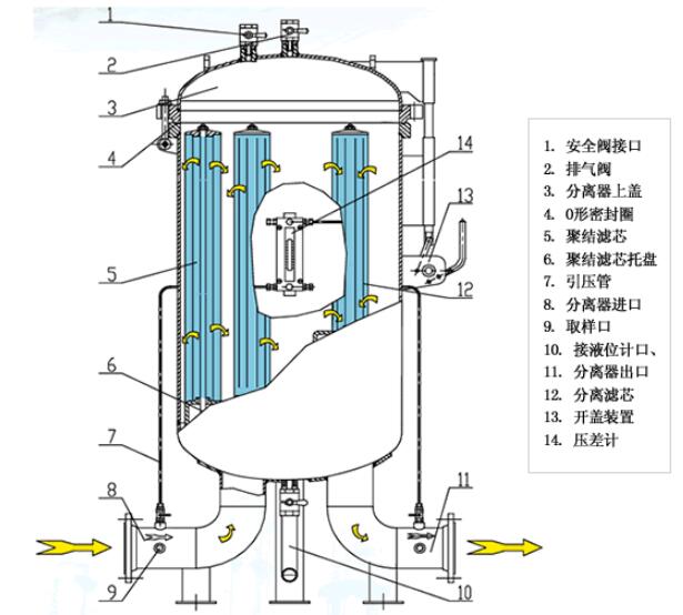 聚結(jié)分離器可通過更換不同材料的濾芯以適應不同的介質(zhì)